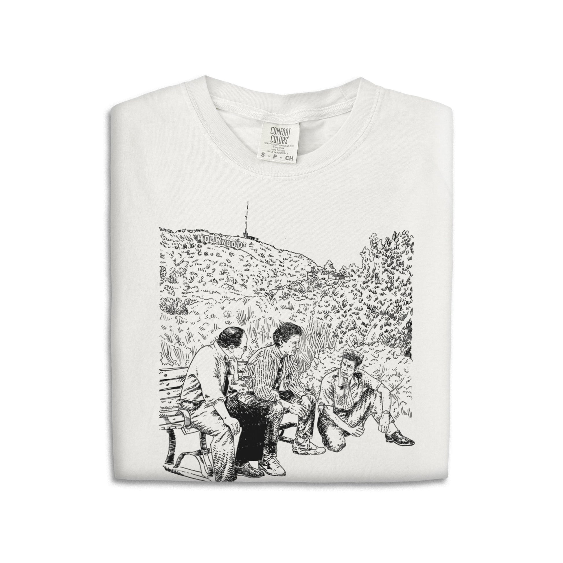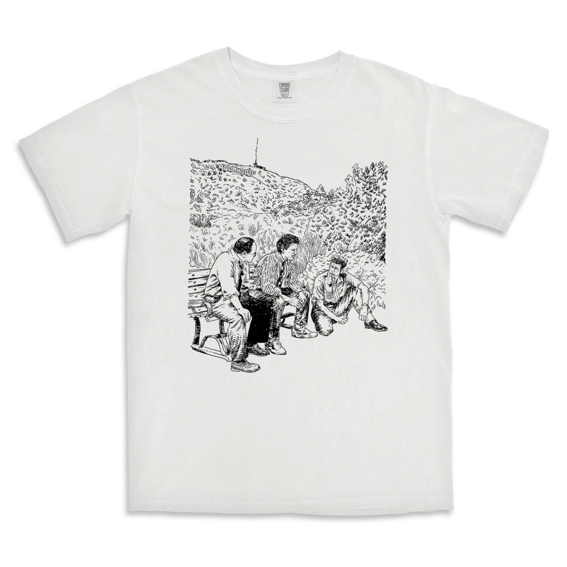 Made in collaboration with Adam Villacin, American Water’s "The Trip" T-shirt features three of our favorite New Yorkers in the Hollywood Hills.
