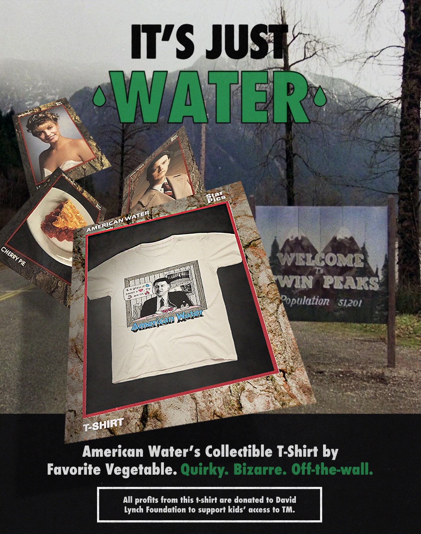 Made in collaboration with Favorite Vegetable, American Water’s collectible "My Socks Are On Fire" T-shirt features Chief Gordon Cole in desperate need of water.